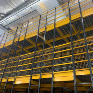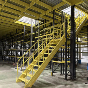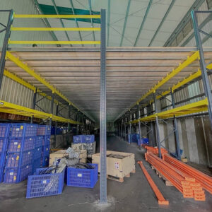 其設計以中、重型料架為基礎,用料架做樓面支撐將倉庫分為上下2-3個樓板空間的一種獨特料架。以高度來換取空間,充分利用倉庫的上部空間,大幅增加儲位數量。可搭配堆高機和升降平台使用以方便貨物上下樓。適用於庫房較高,貨物較小,人工存取,儲貨量大的情況。